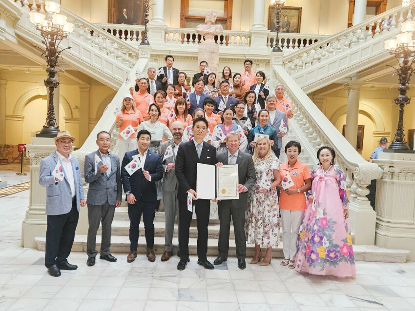 브라이언 켐프 조지아 주지사가 80주년 광복절을 맞아 애틀랜타 한인회(회장 박은석)에 선언문을 전달했다.