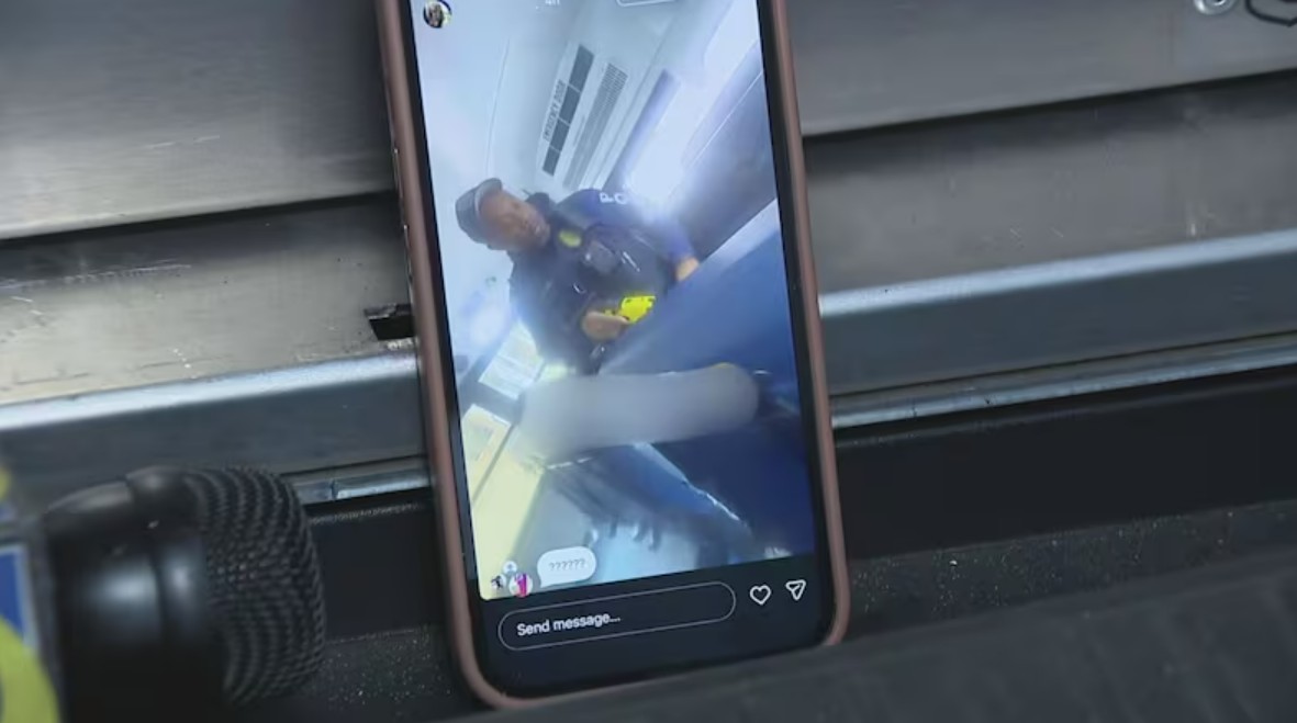 영상에서 학생은 경찰관이 일어나라고 말하는 동안 소리를 지르는 것이 들린다.
