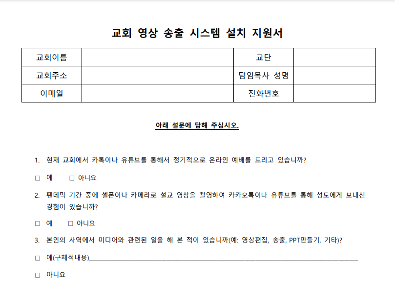 지원 교회들은 각 신청서를 작성해 이메일 kccgaforever.gmail.com 로 보내면 된다.