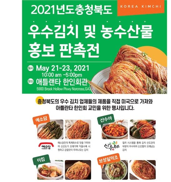 2021 충청북도 우수김치 및 농수산물 홍보 판촉전이 오늘(23일) 까지 애틀랜타 한인회관에서 열린다.