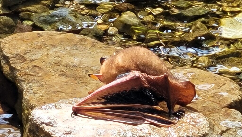박쥐는 건강을 회복하지 못하고 폐사했으나 조사 결과 멸종위기종이자 천연기념물 452호인 붉은박쥐로 확인됐다.