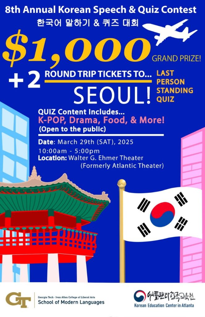이 대회는 29일 오전 10시부터 오후 5시까지 애틀랜타 다운타운 월터 에머 싸어터에서 열리며, 조지아텍 한국어 프로그램 김영택 디렉터가 맡아 총괄 진행한다.