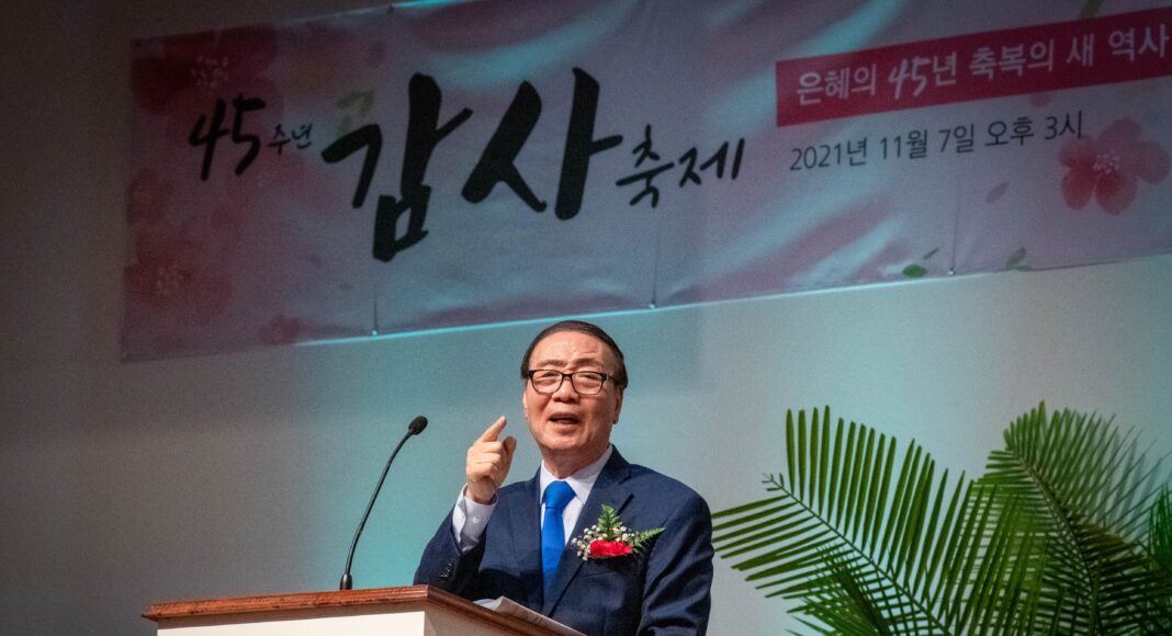 서삼정 목사는 ‘과거를 통해 미래를 만드신다’는 말씀으로 설교를 통해 “하나님의 은혜는 진행형이고 하나님의 역사도 진행형”이라고 강조했다. 또 “지난 45년간은 험난하고 고달픈 여정이 있었다” 면서 “실로 눈물 골짜기를 통행할때 그곳으로 많은 샘이 되게 하며 이른 비로 은택을 입히신 하나님께 감사할 뿐이다” 고 말했다.
