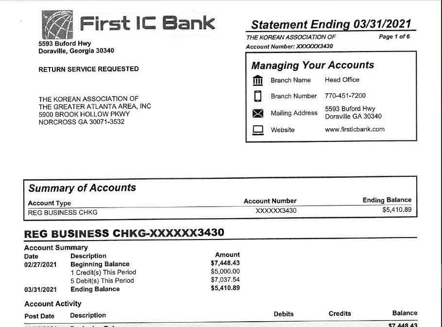 이 은행의 뱅크 스테이트먼트와 귀넷카운티에서 받은 자료들을 대조한 결과 김윤철 전 애틀랜타한인회장이 귀넷카운티가 제공한 코로나19 연방기금을 풀타임 급여 명목으로 부정 수령한 것이 사실로 드러났다. (본지기사 링크).