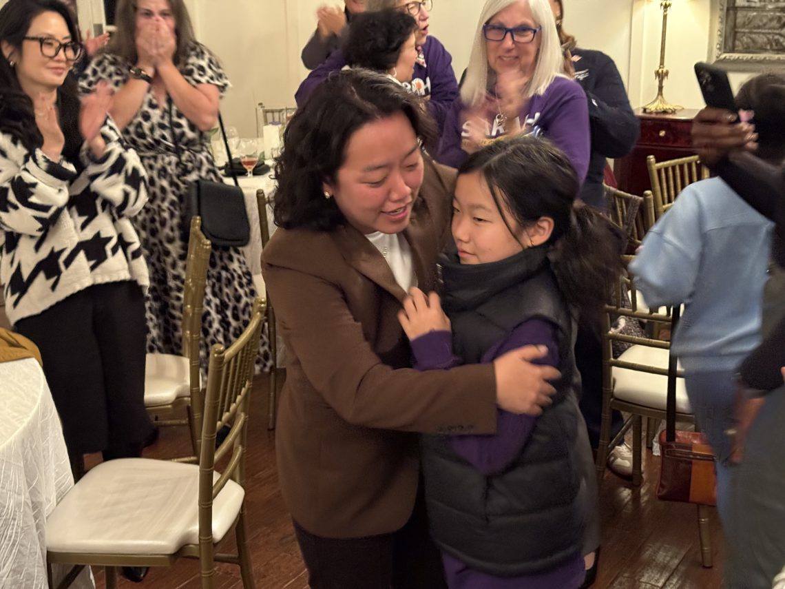 새라 박 후보는 당선이 확정되자 어린이들과 일일히 허그를 하며 기쁨을 나눴다.