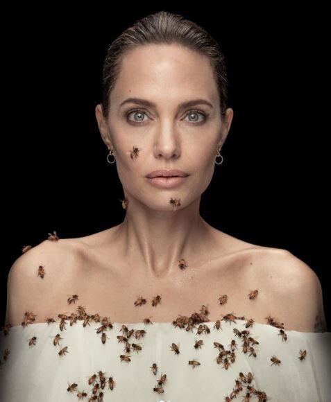 할리우드 배우 앤젤리나 졸리가 꿀벌 6만 마리에 뒤덮였다.