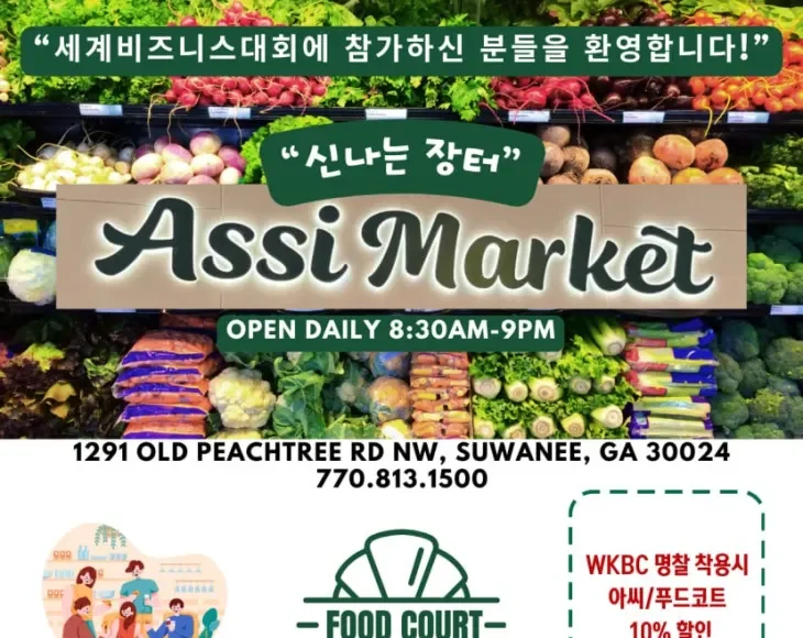애틀랜타 아씨마켓(Assi Market)이 오는 17일(목)부터 20일(일)까지 나흘간 애틀랜타에서 열리는 ‘제23차 세계한인비즈니스대회’를 기념하여 대규모 특별 할인 행사를 진행한다.