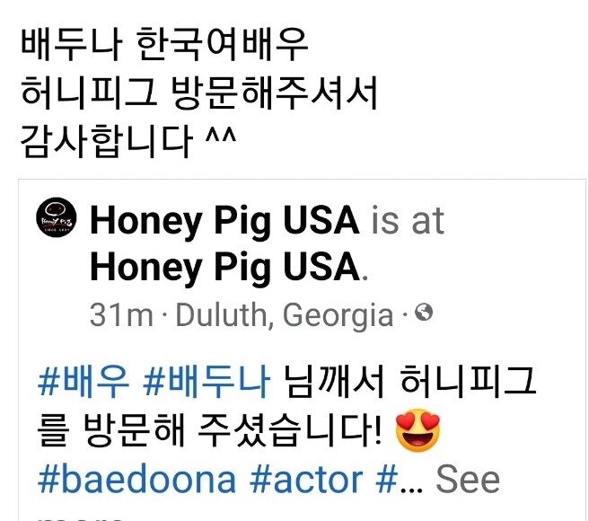 헐리웃 여배우 배두나 최근 방문 화제