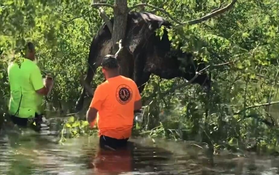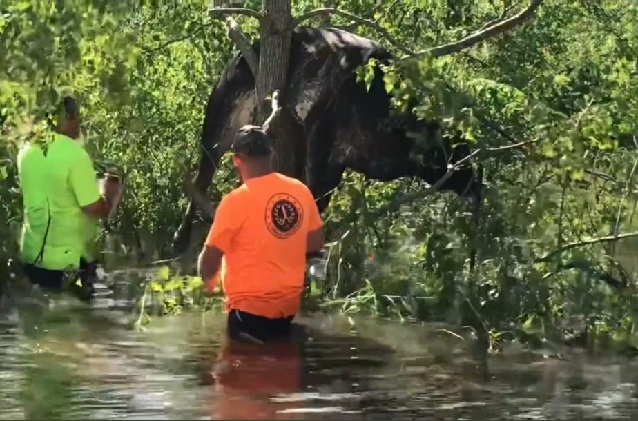 1일 CNN 등에 따르면 루이지애나주의 세인트 버나드 패리시 카운티는 이날 소셜미디어(SNS) 트위터에 공무원들이 2m가량의 나무 위에 걸린 소 한 마리를 구출하는 30초 분량의 동영상을 공개했다.