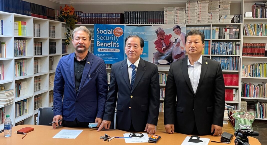 지난달 29일(목) 애틀랜타 한인회는 6000개의 푸드박스 나눔행사 프로젝트를 발표하고 있다. (왼쪽부터 김영배 이사장, 김윤철 회장, 김상국 수석 부회장 /사진: K NEWS ATLANTA