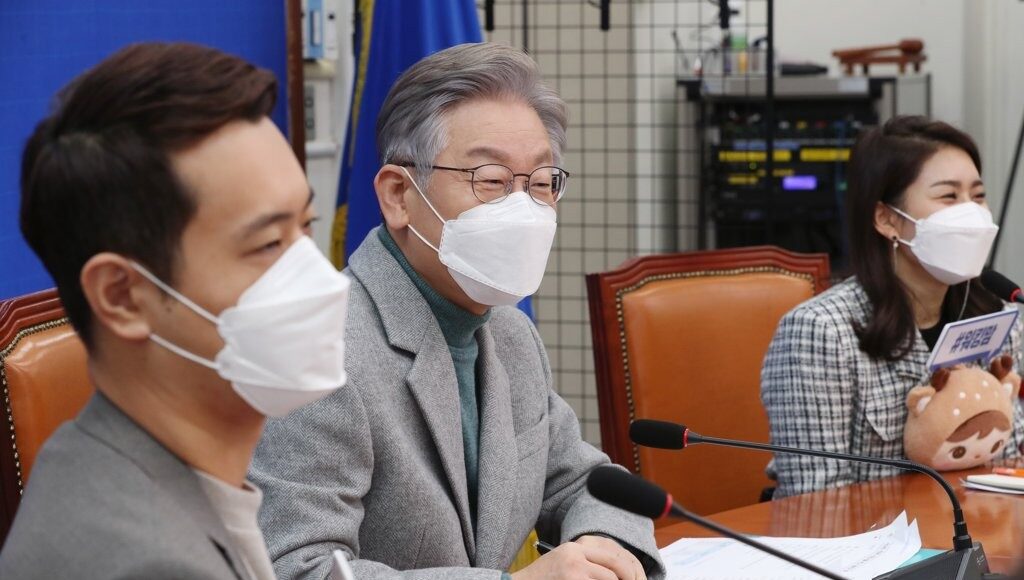 이날 회의는 기존과 달리 ‘전 국민 선대위’라는 이름으로 이 후보가 청년들과 간담회 하는 형식으로 진행됐다.