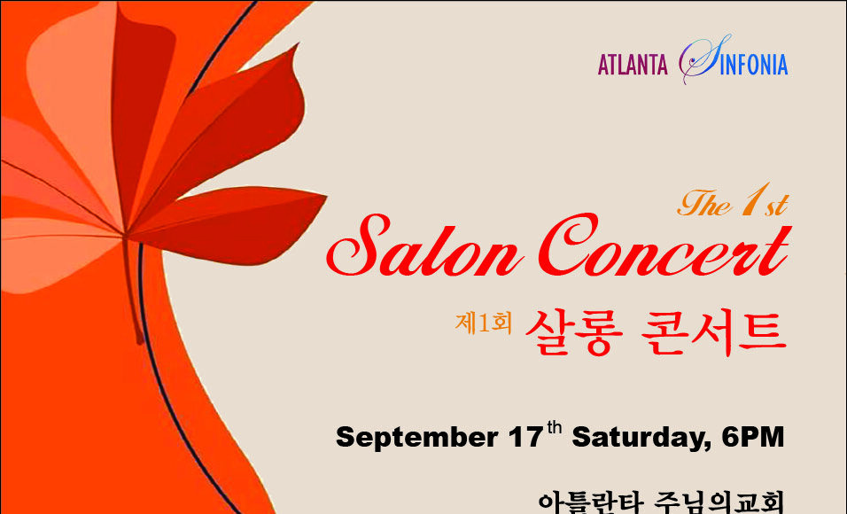 애틀랜타신포니아(음악감독/지휘자 박평강)이 17일 (토) 저녁 6시 애틀랜타 주님의 교회에서 첫번째 살롱 음악회를 연다.