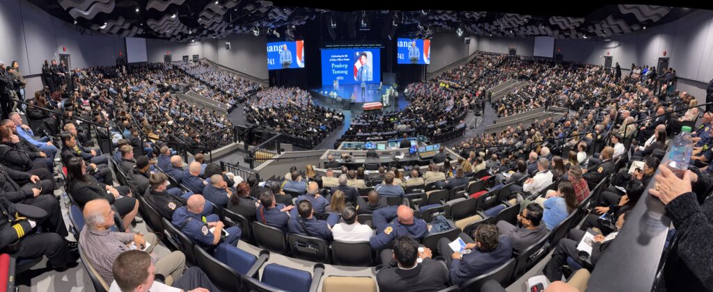 이번 장례식은 지난주 귀넷 카운티에서 사기 신고를 조사하던 중 총격을 받아 순직한 25세의 프라디프 타망(Pradeep Tamang) 경관을 기리기 위해 마련됐다. 타망 경관은 경찰학교를 지난해 5월 졸업한 신임 경찰관으로, 앞으로의 경력을 기대하던 참이었다.