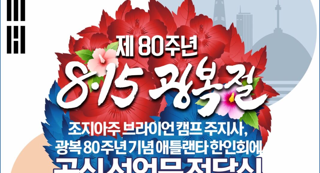 한편, 애틀랜타 한인회(회장 박은석)은 광복절인 15일 오후 6시, 애틀랜타 한인회관에서 광복 80주년 기념 행사를 연다.