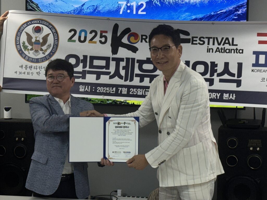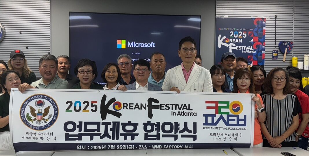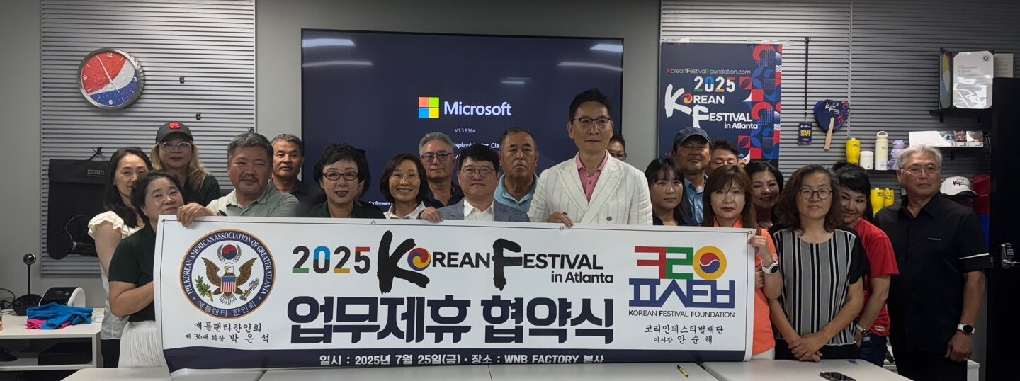 애틀랜타한인회 (회장 박은석)과 코리안페스티벌재단 (이사장 안순해)는 지난 25 일 WNB팩토리 사무실에서 상호 업무협약(MOU)를 맺고 2025년 코리안 페스티벌 공동주최 및 성공적인 행사를 위해 협력하기로 했다.
