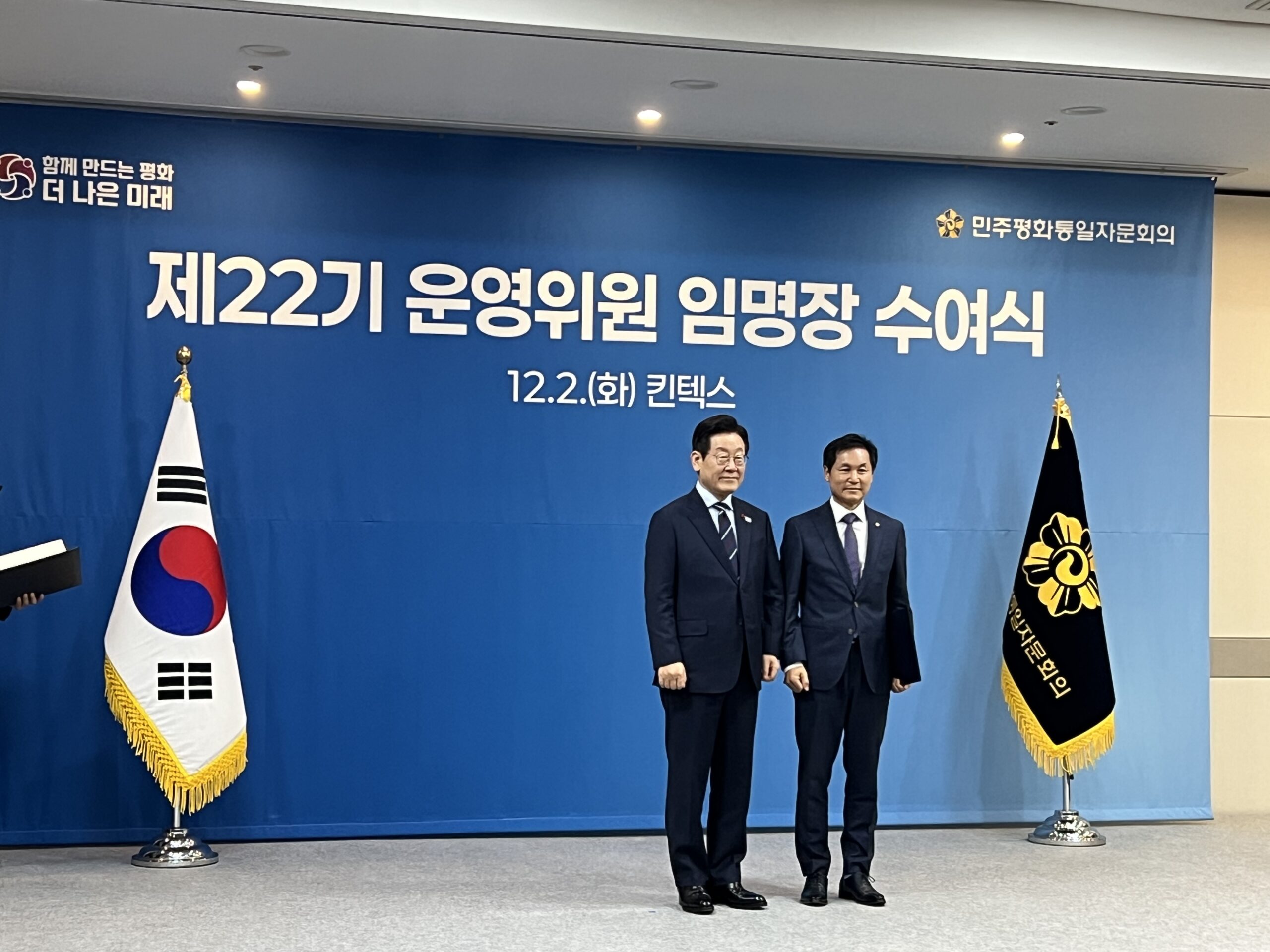민주평화통일자문회의 제22기 운영 위원으로 임명된 김형률 전 애틀랜타 평통 회장이 지난 2일 한국 고양시 킨텍스에서 열린 민주평통 출범식에서 이재명 대통령으로부터 임명장을 수여 받았다.