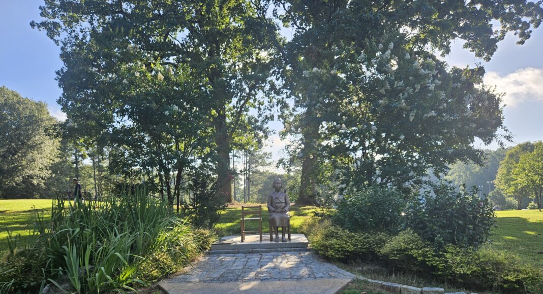조지아주 메트로 애틀랜타 브룩헤이븐시 블랙번공원에 설치된 소녀상이 폭염과 폭우로 무성해진 잡목과 잡초들이 제거되고 깔끔하게 주변을 단장해 방문객을 맞고 있다.