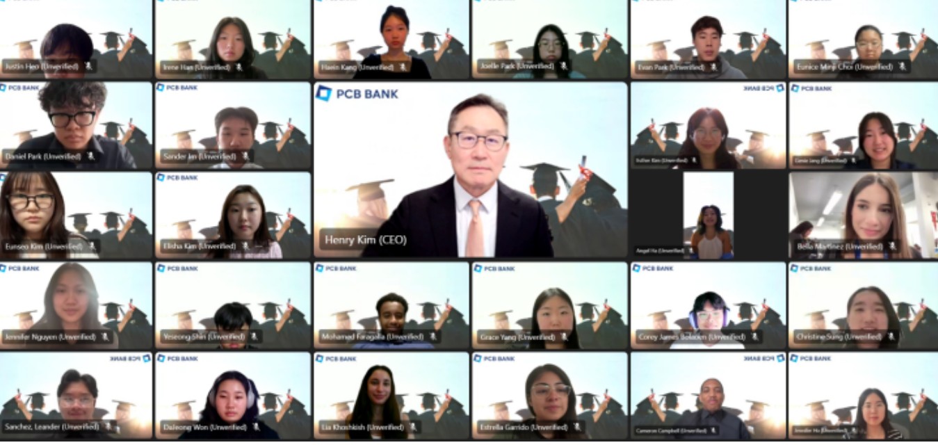 PCB 뱅크(행장 헨리 김)가 26일(목) 제8회 장학금 수여식을 온라인으로 개최하고 전국의 대학 진학 예정 고등학생 36명에게 각각 3000달러, 총 10만8000달러의 장학금을 전달했다.